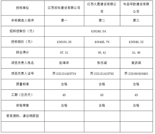拟确定中标人:江苏欣句建设有限公司