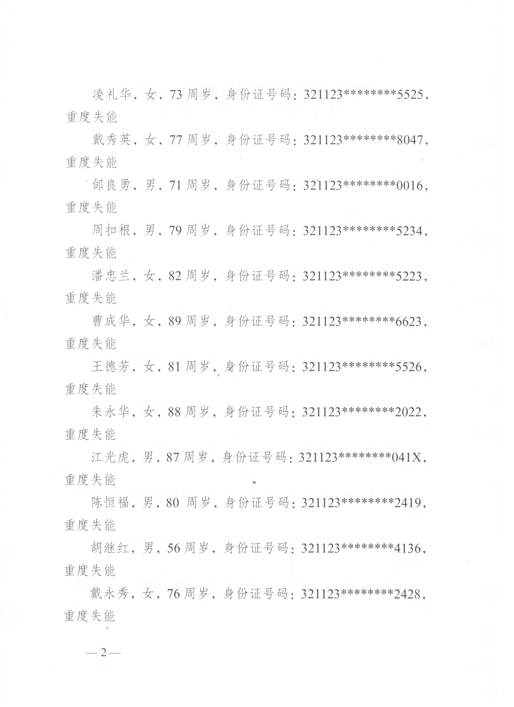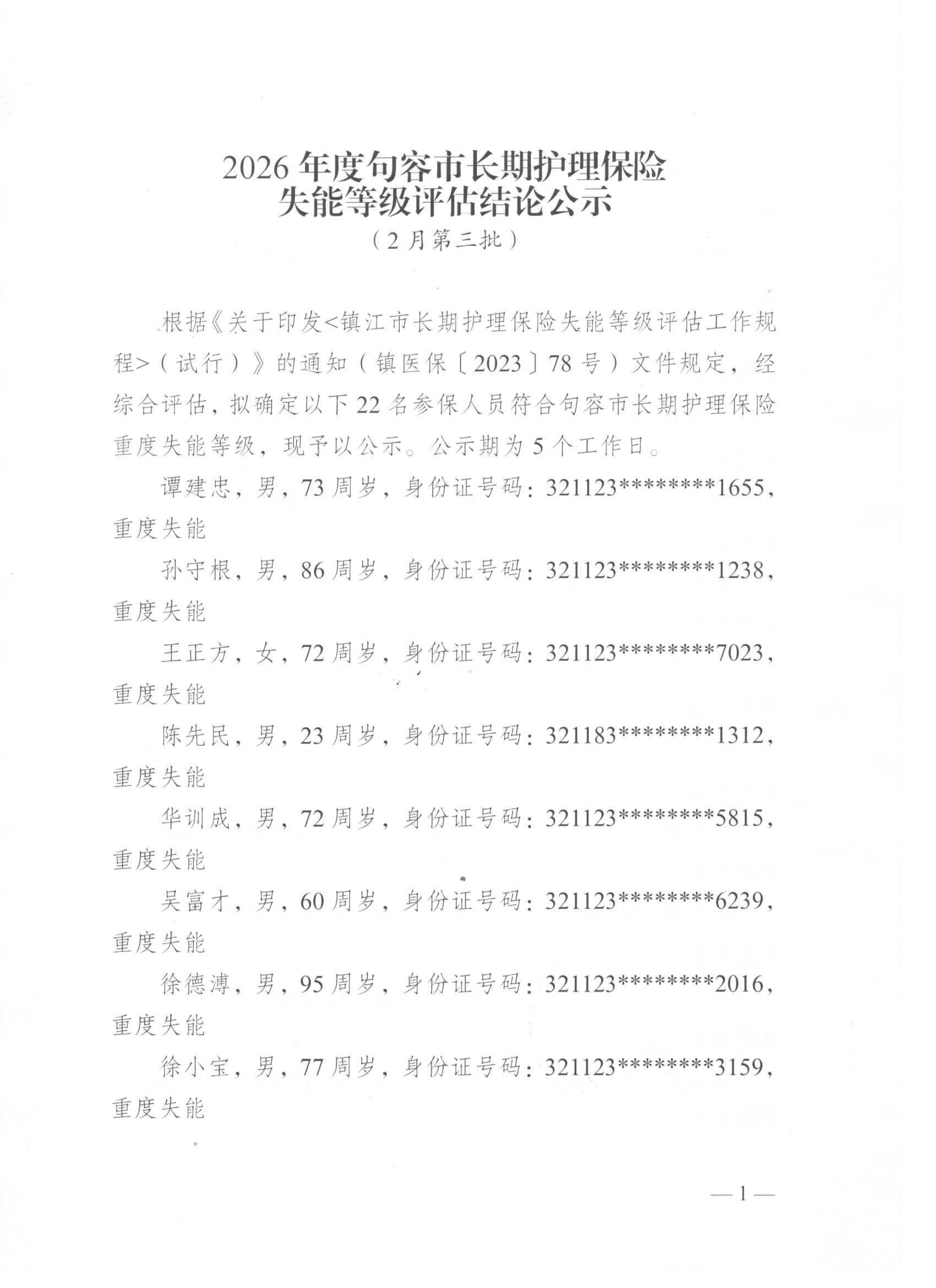 2026年度句容市长期护理保险失能等级评估结论公示(2月第三批)