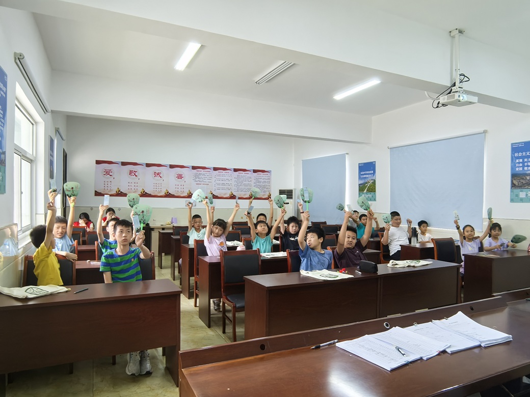 活动最动人的环节出现在绿书签创作时刻。工作人员发放的团扇和书签瞬间变成“心灵画布”,孩子们或趴或跪认真书写。当扎着蝴蝶结的媛媛举起写有“好好学习,天天向上”的书签时,现场爆发出欢乐的掌声,还有的孩子写下了“要和小伙伴做永远的好朋友”的承诺。稚嫩的童声传递着纯净的心声,小小的“绿书签”守护着孩子们的心灵。