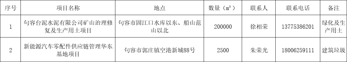 句容市回填(需土)项目信息公示(2026年3月)