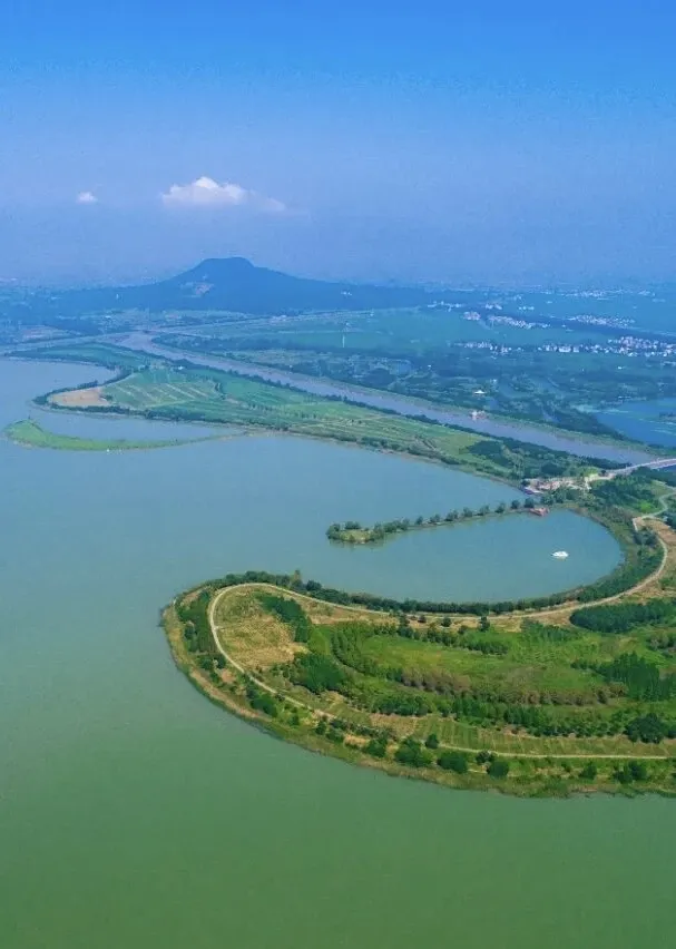 赤山湖的春天,碧波荡漾,芦苇轻摇,水鸟翩跹掠水而过,环湖步道蜿蜒向远。