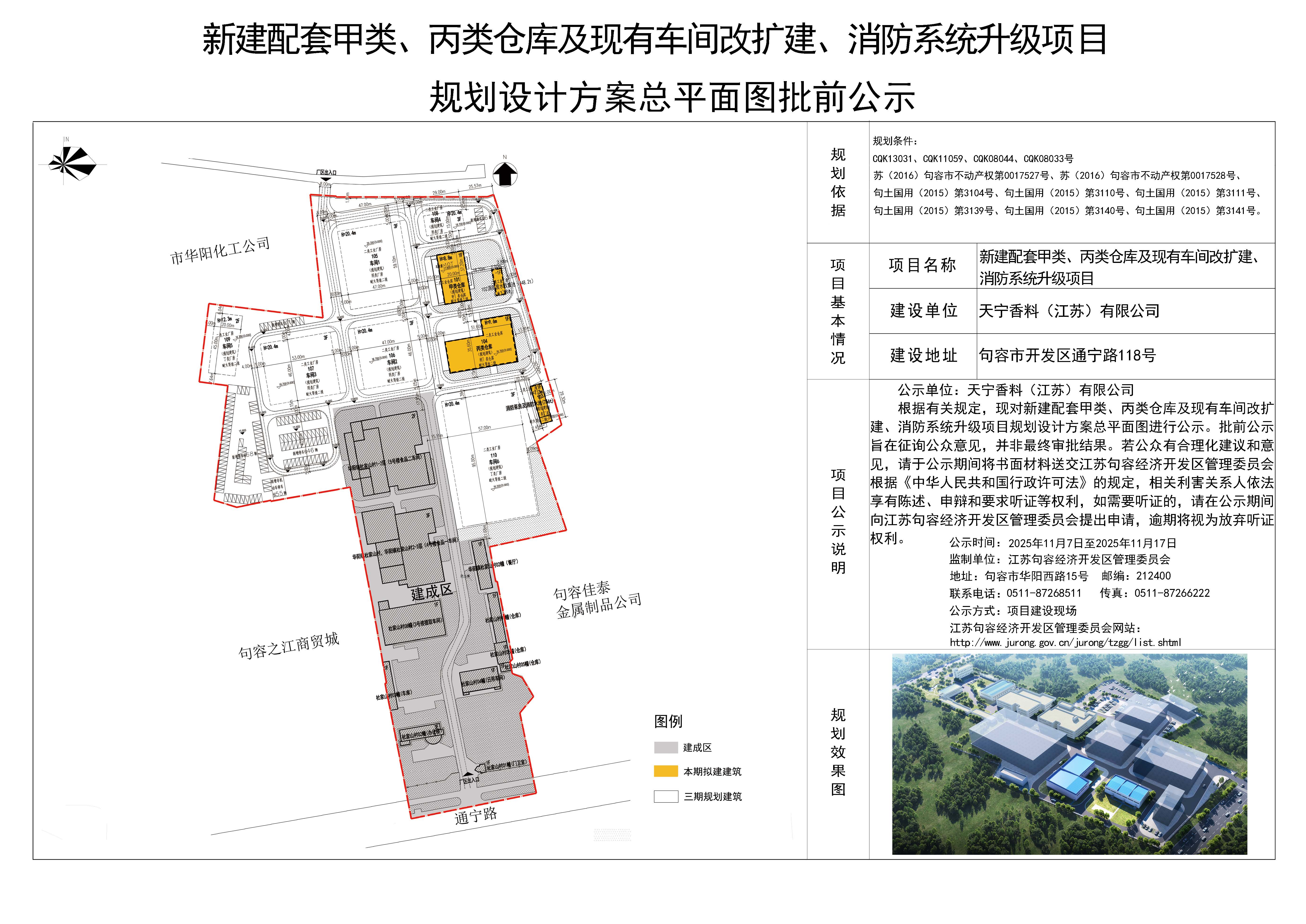 新建配套甲类、丙类仓库及现有车间改扩建、消防系统升级项目规划设计方案总平面图批前公示