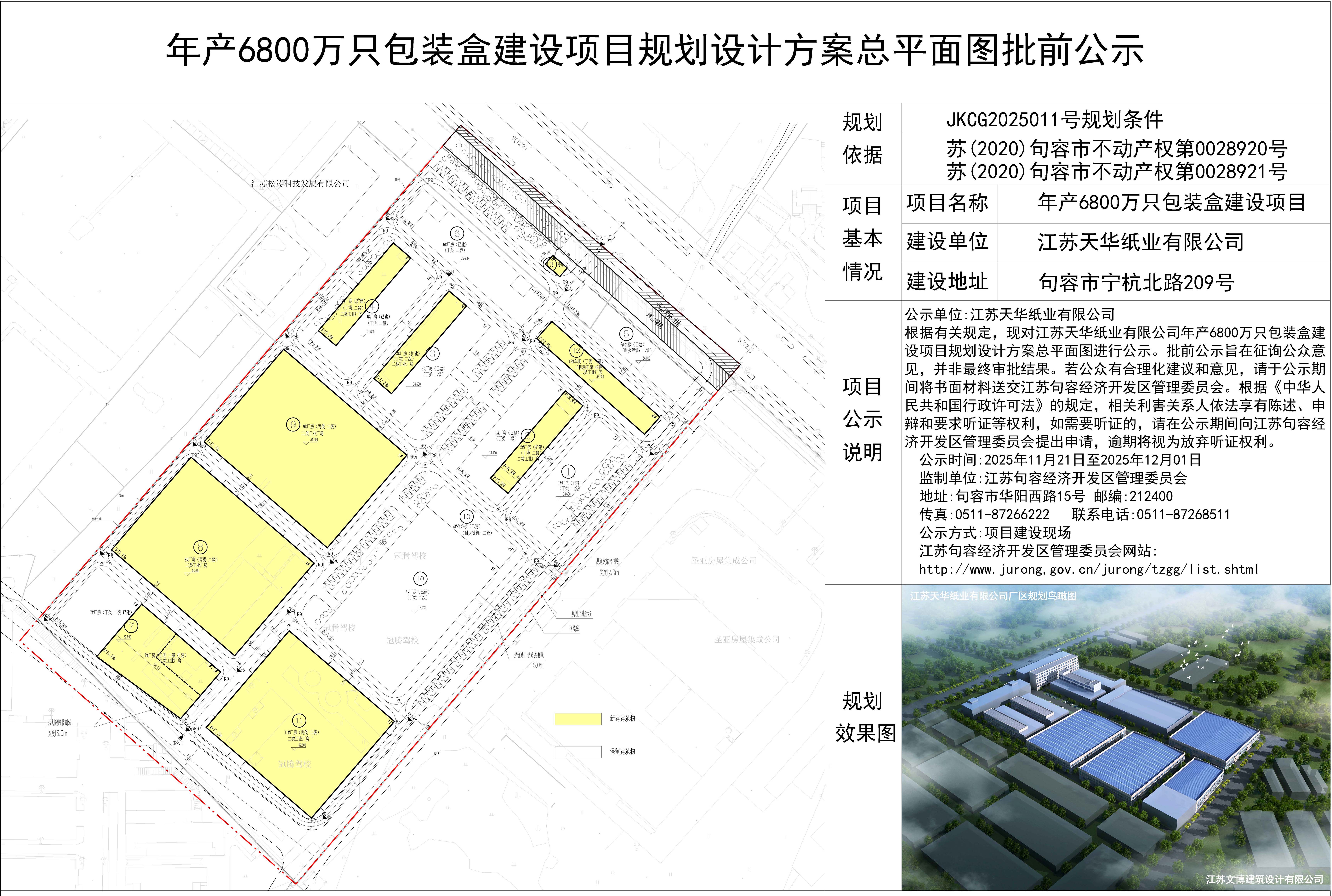 年产6800万只包装盒建设项目规划设计方案总平面图批前公示