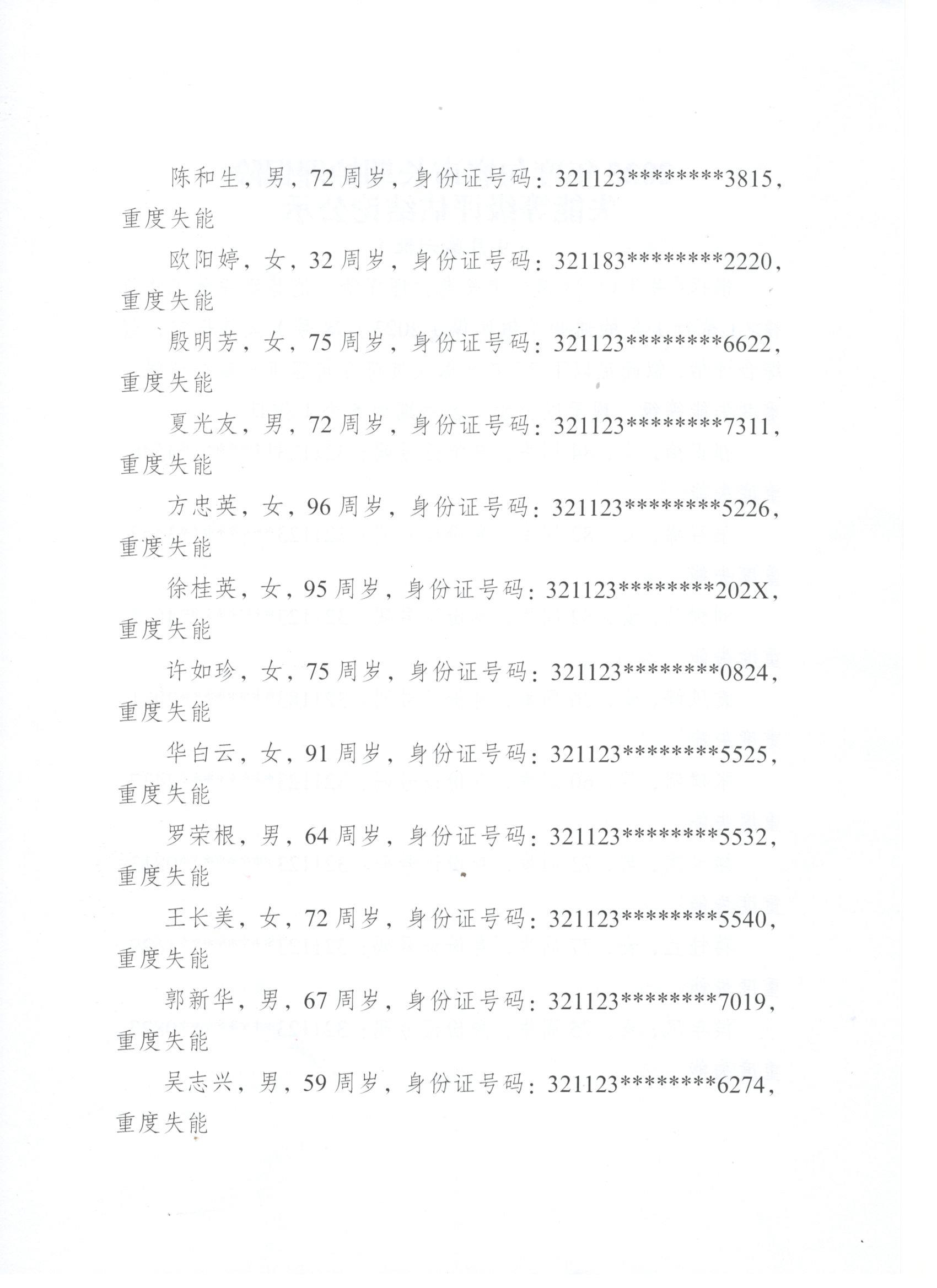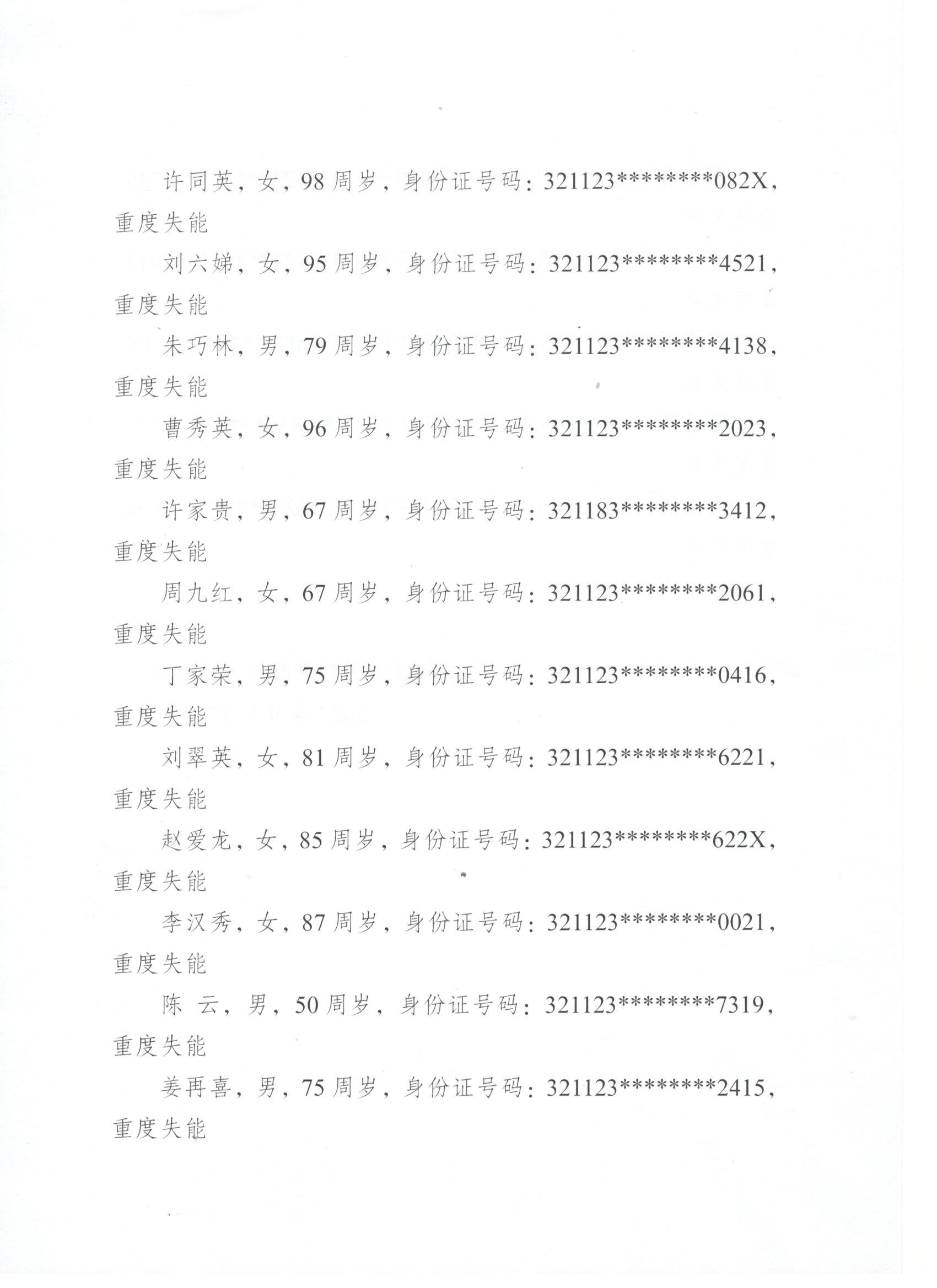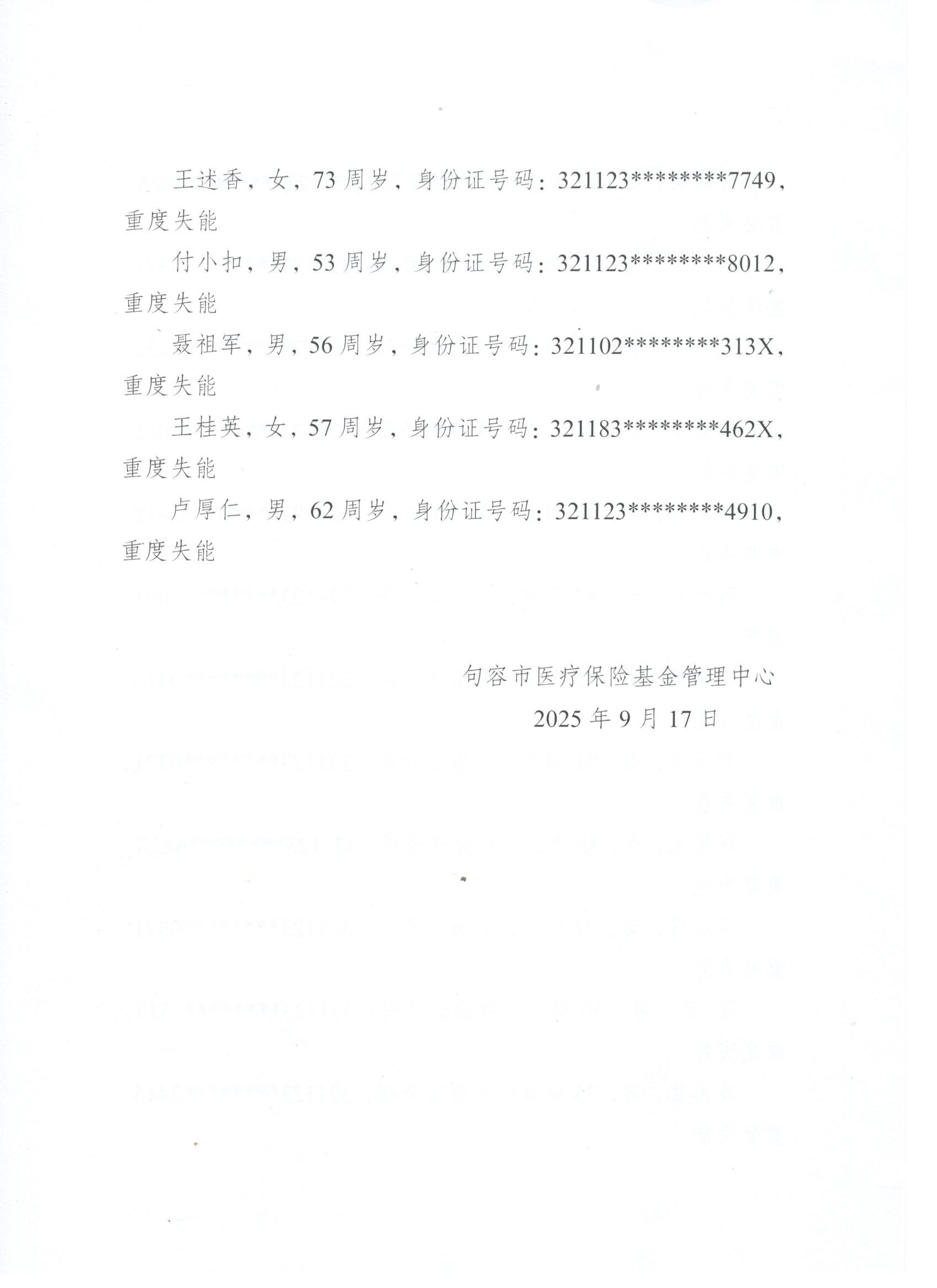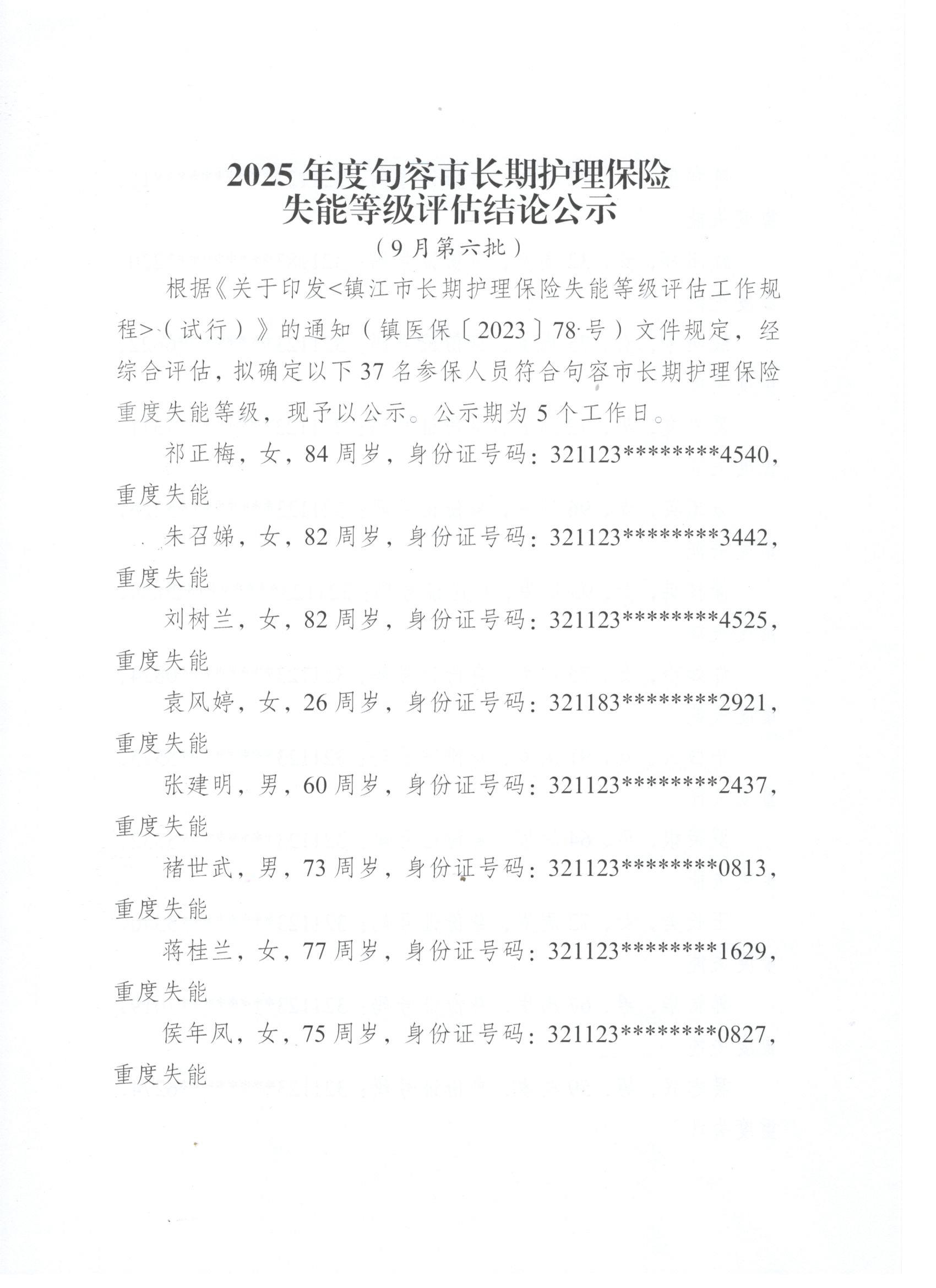 2025年度句容市长期护理保险失能等级评估结论公示(9月第六批)