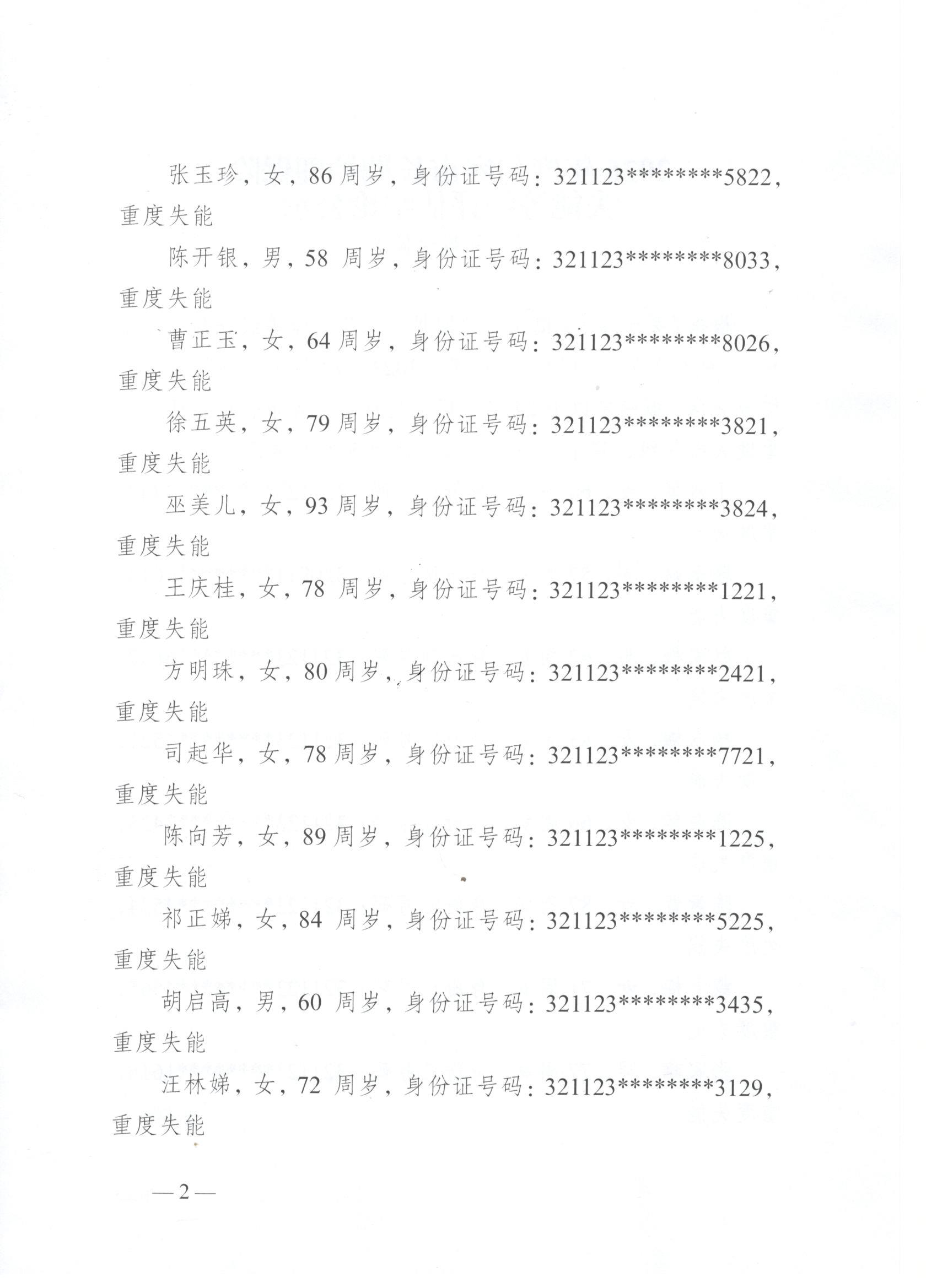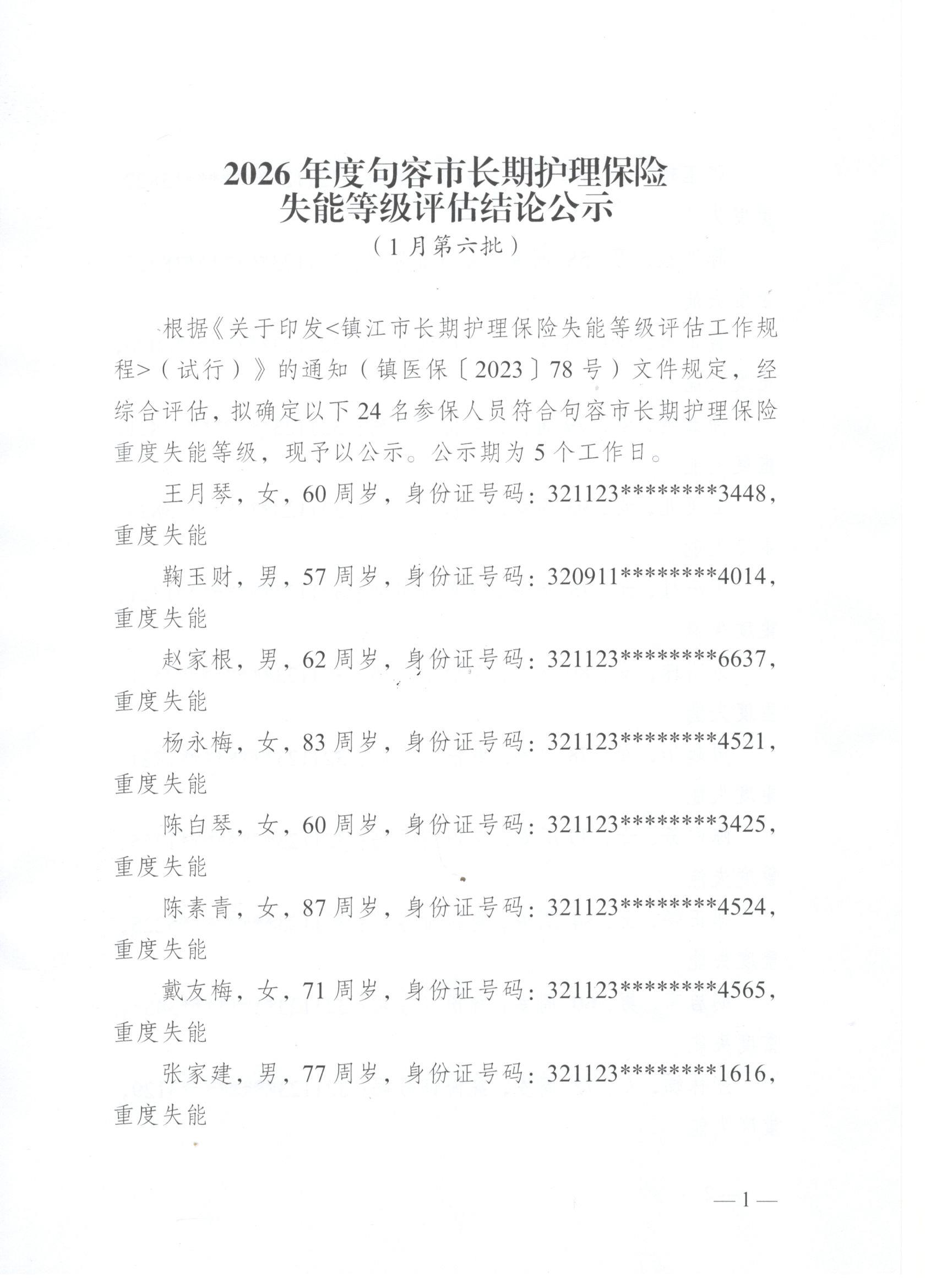 2026年度句容市长期护理保险失能等级评估结论公示(1月第六批)
