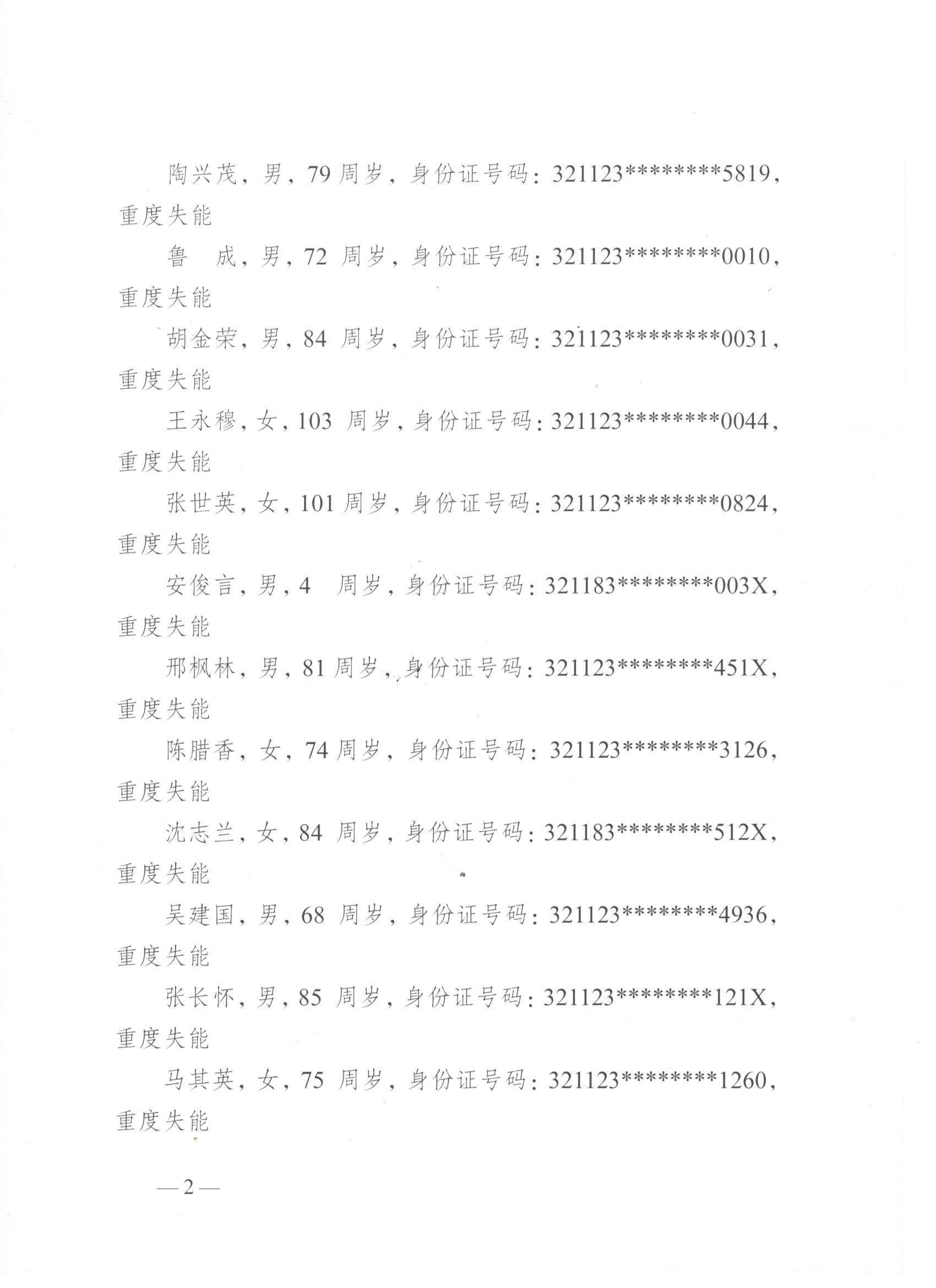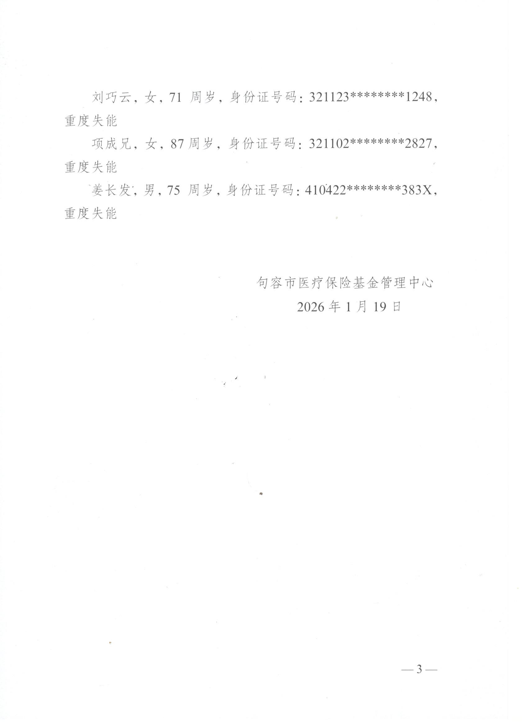 2026年度句容市长期护理保险失能等级评估结论公示(1月第四批)