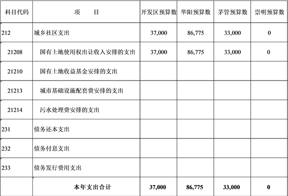 崇明街道无政府性基金收入,不予安排政府性基金支出。(2024年开发区、华阳街道、茅山风景区、崇明街道政府性基金预算支出预算表,详见附表四)